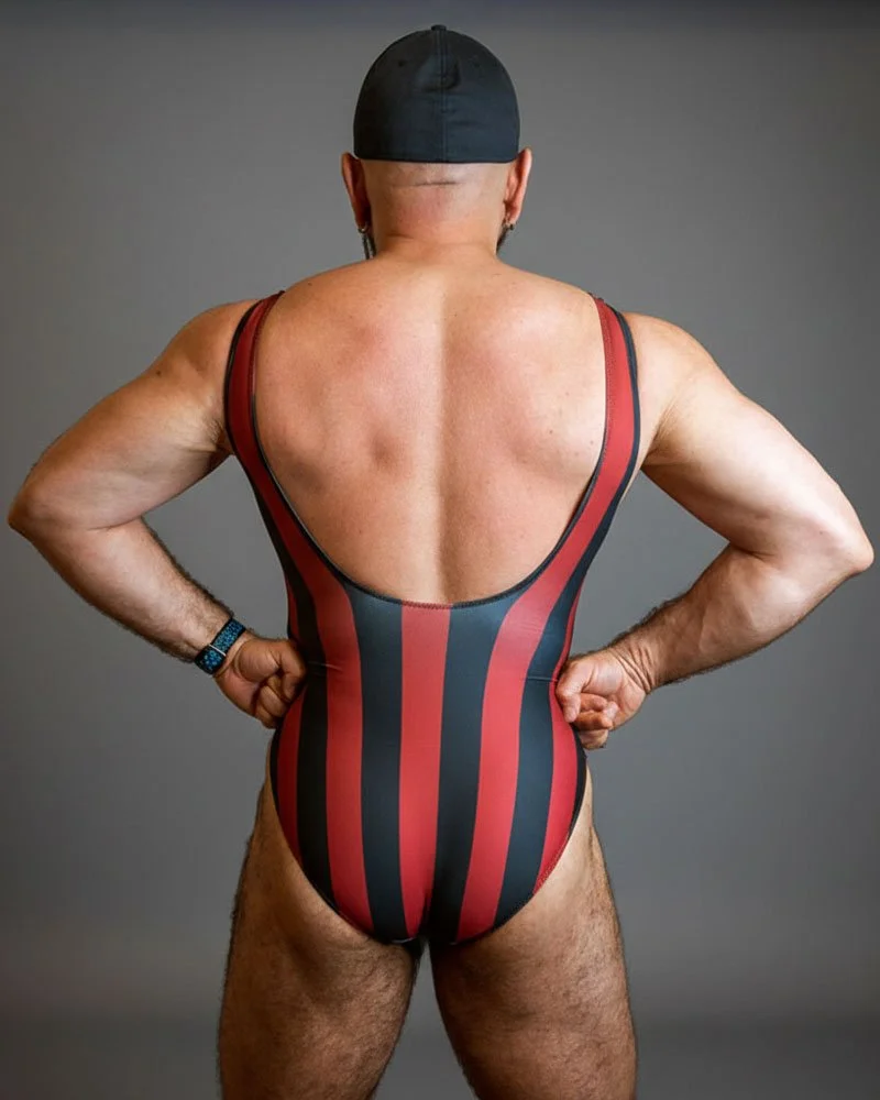 There is a moment, just after you pull the straps over your shoulders and feel the spandex stretch against your body, when you understand exactly what the butcher singlet is for. It is definitely not for modesty. The butcher singlet is for confrontation against your opponent. It's a bold serve: cut high at the hip and tight across the chest while leaving the back exposed. It leaves nothing to hide behind. The butcher singlet turns you into a weapon of spandex fetish and muscle power.