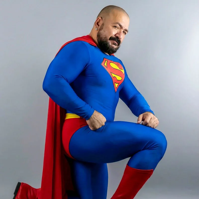 If I were to name one fictional character that shows up the most in queer kink and leather culture (as well as cis/het kink culture), it would have to be Superman. We now live in an age of amateur porn, OnlyFans, and JustForFans, and it's easy to see the emblematic blue leotard, red trunks, yellow belt, and stunning red cape show up over and over in erotic scenes. People from all walks of life stage these as a way to embody power exchange, using the very stories of the character. In many of these videos, short films, erotic drawings, and AI-generated art, fans show Superman being subdued by kryptonite, Lex Luthor, or other villains, mirroring the beats of the comics, TV series, and films.